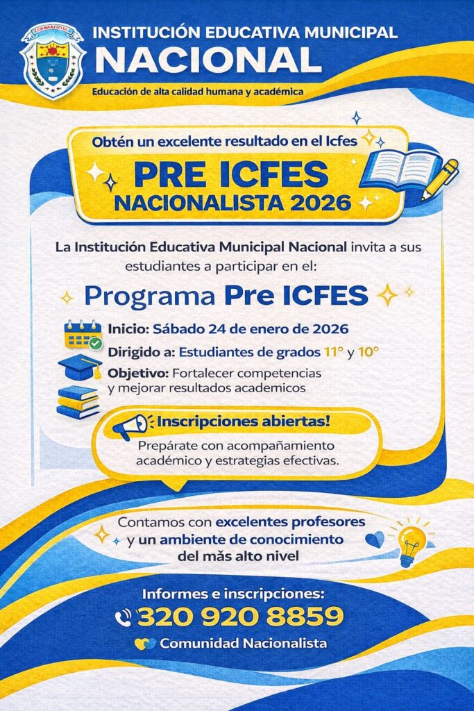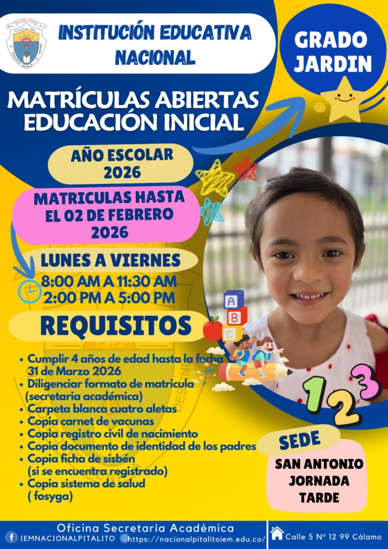 La Institución Educativa Municipal Nacional te invita a ser parte del proceso de inscripciones y matrículas 2026.