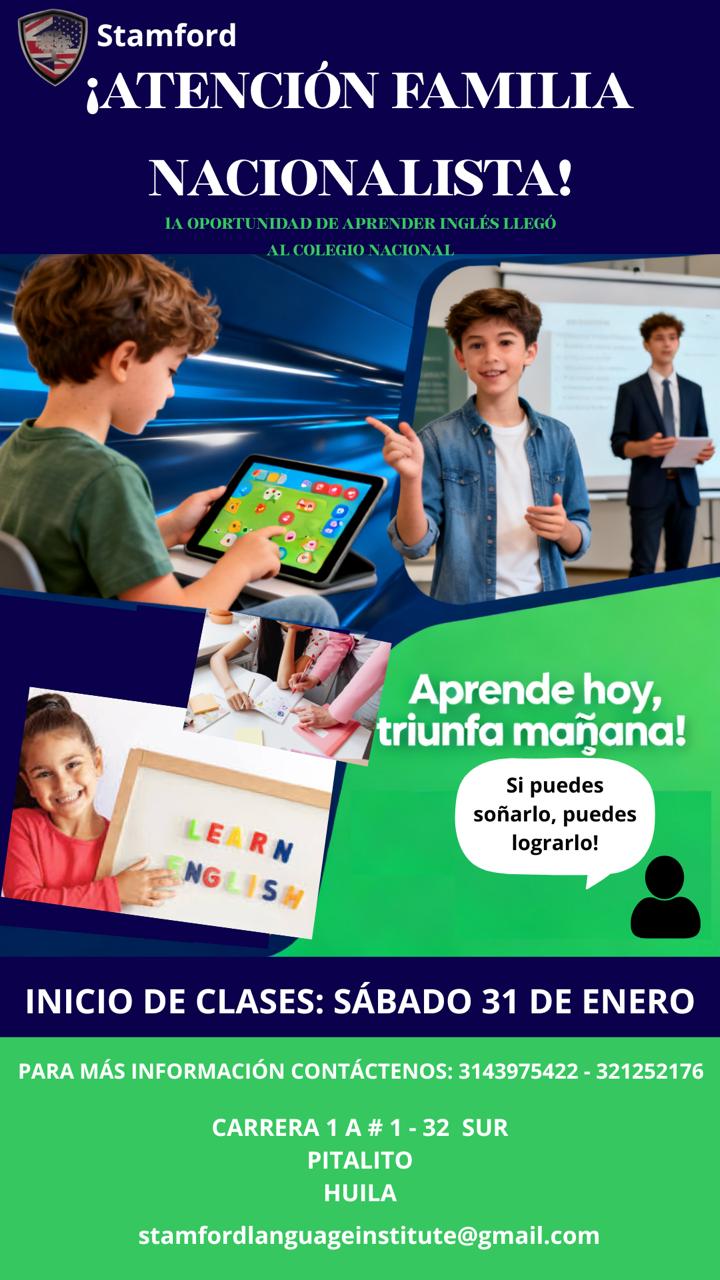 INGLÉS AVANZADO CON EL INSTITUTO STAMFORD EN LA I.E.M NACIONAL Curso conversacional enfocado en la lúdica y la práctica del inglés.